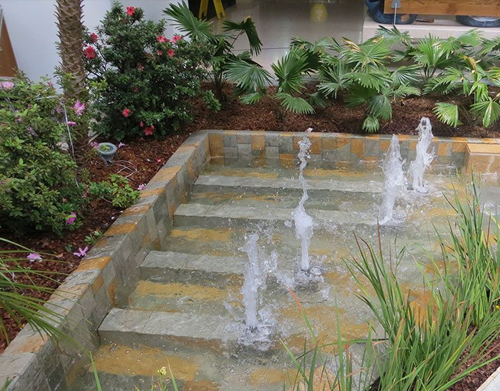 Define el estilo del diseño con el toque único de una fuente de agua ajustada al concepto de la infraestructura donde se ubica.
